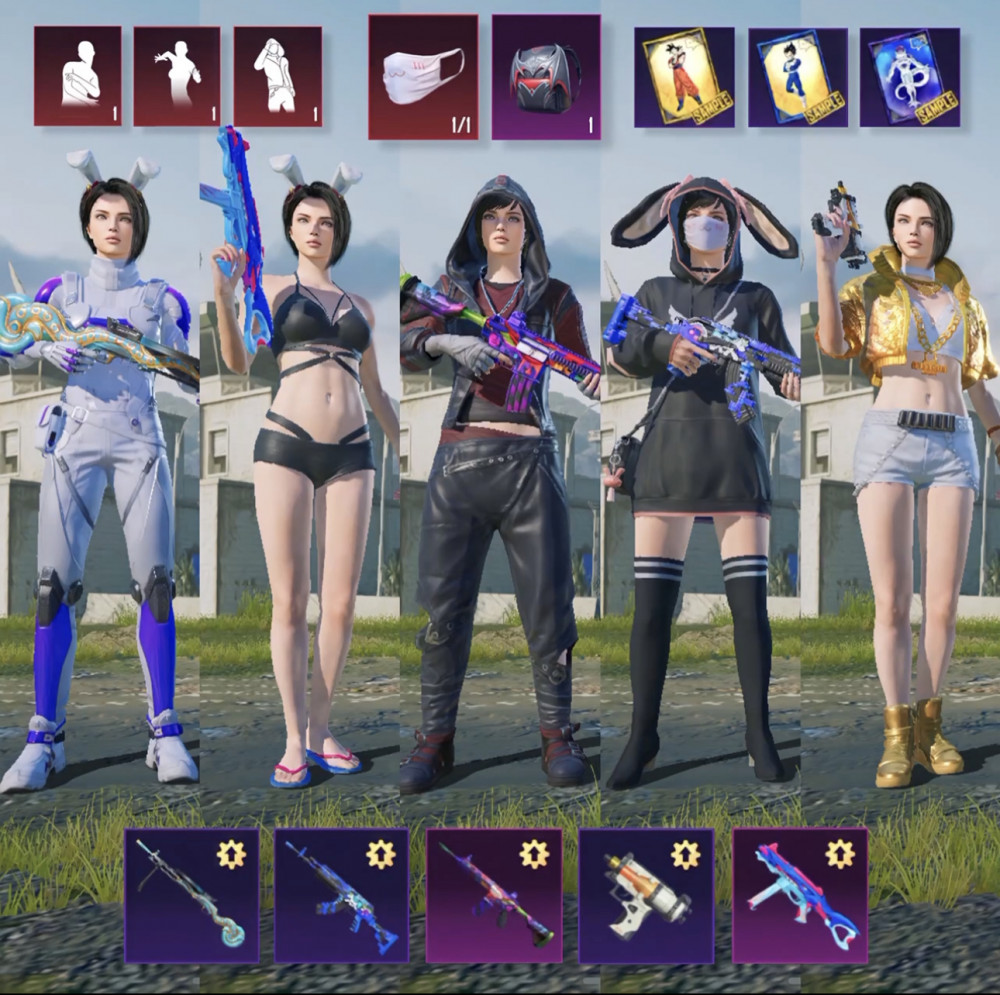 فيس البنت, مجموعة الناجي, مجموعة الارنب مع الماسك المثك, مجموعة المجوهرات, مجموعة المتنكر, مجموعة دراغون بول, خوذة القودزيلا, لفل 69, إطار آلن ووكر, حقيبة السلحفاة, حقيبة باتمان الحمراء, حزمة اصوات منوعة, مفعل البرايم بلس, اسلحة التطوير 6: امفور الجوكر كل مسج, M7 الفرس كل مسج, UMP ماكس
